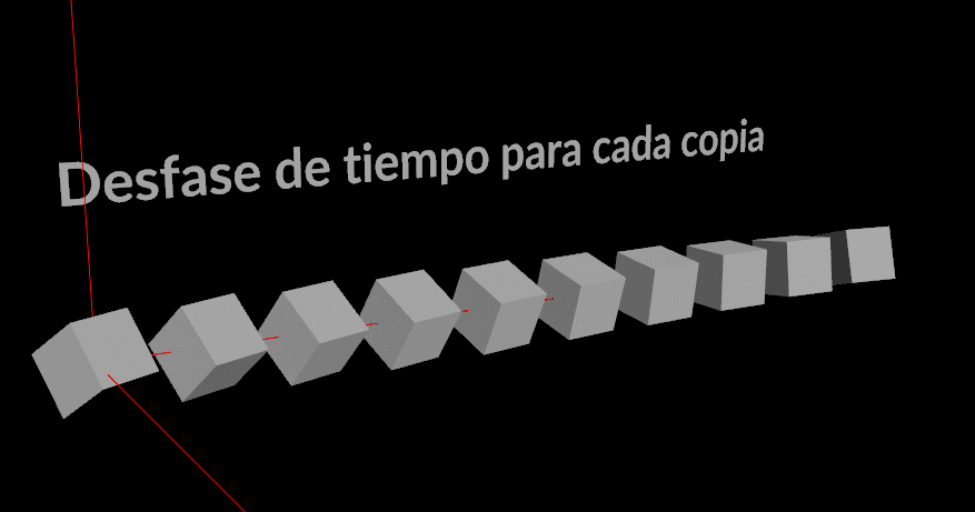 Aprende a crear animaciones con desfase entre múltiples copias utilizando bucles for-each y nodos timeshift para lograr efectos rítmicos y dinámicos.