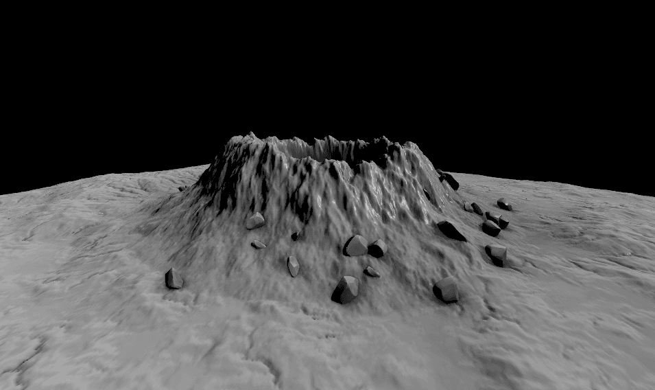 Aprende a crear un terreno erosionado con un cráter central usando heightfields y herramientas de desplazamiento procedural en Houdini.