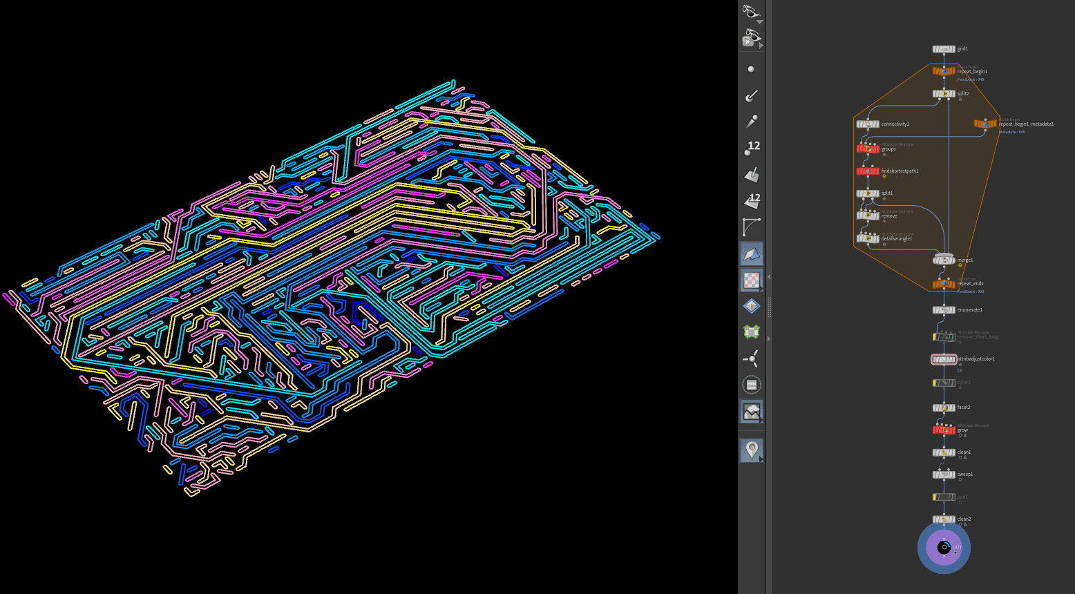 Aprende a crear redes de líneas o circuitos electrónicos usando geometría procedural, VEX y estructuras iterativas en Houdini.